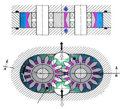 ZW-LA系列螺紋鏈接齒輪流量計(jì)腔體內(nèi)有一對(duì)互相嚙合的齒輪作為轉(zhuǎn)子,兩個(gè)齒輪與腔體可以分別構(gòu)成一個(gè)固定的體積,稱為標(biāo)準(zhǔn)容積、流量就是通過(guò)計(jì)算一定時(shí)間內(nèi)來(lái)流通過(guò)標(biāo)準(zhǔn)容積的個(gè)數(shù)來(lái)計(jì)量。兩個(gè)精密配合的齒輪封閉在堅(jiān)固的腔體內(nèi),工作時(shí),被測(cè)液體推動(dòng)齒輪旋轉(zhuǎn),由非接觸式的檢測(cè)器檢測(cè)齒輪的轉(zhuǎn)動(dòng)。齒輪間的的間隙形成測(cè)量腔室。每齒經(jīng)過(guò)檢測(cè)器時(shí),檢測(cè)器產(chǎn)生一個(gè)脈沖。輸出的脈沖信號(hào)經(jīng)儀表容積/脈沖(Vm)換算和處理,顯示為滿足用戶要求的讀數(shù)。此流量計(jì)特別適用于精密、高壓、高黏度環(huán)境。