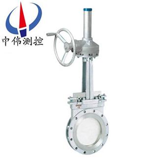 Three,Bevel gear knife gate valve in the darkUses and characteristics: 1, the circular channel design, processed into the bottom plate blade knife, high degree of finish, to ensure a good seal. 2, the upper blades installed in PTFE, scraper, can prevent dust scratch gravel and other substances into the stuffing box. Wear 3, poly resin hem pyramidal or Ni made of wear-resistant cast iron is installed in the inlet end of the knife gate valve, can prevent particles directly scour on the seal, which can improve the working condition, prolong life. 4, according to the needs of multiple washing opening is arranged on the valve body around, the direct use of air, steam or water to wash, to prevent the gradual accumulation of sediment, especially suitable for the type of fluid difficult. 5, gear holder type knife gate valve has compact design and small occupied space, light weight, easy installation, wear and anti blocking measures to perfect, easy maintenance, long service life.Widely meet the paper and pulp industry, industrial waste water and city sewage treatment, chemical plant, fly ash processing, bulk materials, food and beverage industry requirements and working conditions under harsh environmental conditions slow down. Four,Bevel gear knife gate valve in the darkTechnical parameters: 1.: 0.6MPa, 1.0MPa, nominal pressure 1.6MPa, 2.5MPa, 150Lb; 2. nominal diameter: DN50 ~ 500mm NPS 2 ~ 20"; 3. temperature: -38 ~ + 200 DEG C (specific temperature range as the sealing material and the properties of the media set);