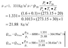 相對應(yīng)Qmin)1=×a,×3600=2.8×0.00205×3600=20.664m3/h對于80A(口徑為80的渦街流量計):
