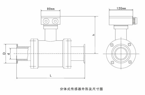 b、分體型:傳感器和轉(zhuǎn)化器分離安裝,通過(guò)連接電纜形成流量計(jì)量系統(tǒng)。